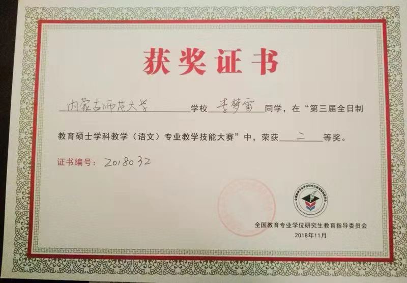 11月16-19日,由全国教育专业学位研究生教育指导委员会、全国高等教育学会语文教育专业委员会、江西师范大学联合主办的第十八届中国高等教育学会语文教育专业委员会年会暨第三届全国教育硕士学科教学(语文)专业教学技能大赛(决赛)”在江西师范大学举行。米乐官网学科教学(语文)专业研究生张丹、李梦雪代表我校参加了本次比赛。经过层层选拔,激烈角逐,最终,张丹、李梦雪从120名参加决赛的选手中脱颖而出,分别获一等奖、二等奖。这充分展示了米乐官网研究生扎实的专业知识和高水平的教学技能水平,同时,也在全国性大赛中展现了米乐官网研究生的风采。米乐官网教师徐雪梅、郭亚明被大会评为“优秀指导教师”,MILE米乐集团获得“优秀组织奖”。