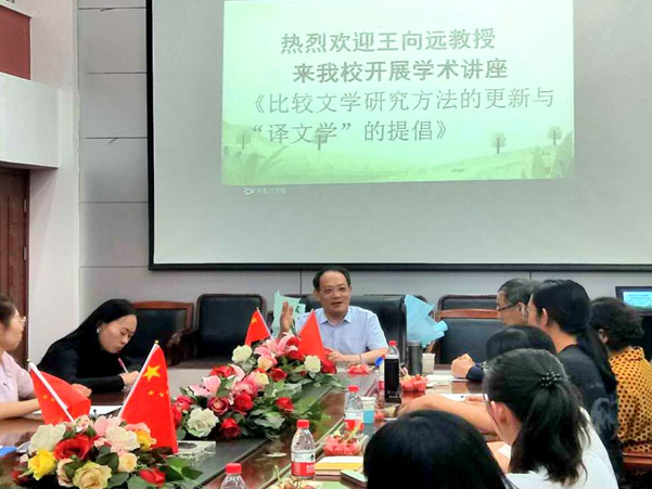 答辩会结束后,王向远教授做了题为“比较文学研究方法的更新与‘译文学’的提倡”的学术讲座。讲座中,王向远教授就比较文学方法论的缺乏与如何更新等问题做了深入的阐述,并多次强调阅读原著对译文学可起到积极作用,使参会师生重拾专业自信,看到了比较文学最为活跃的发展前景,获益匪浅。