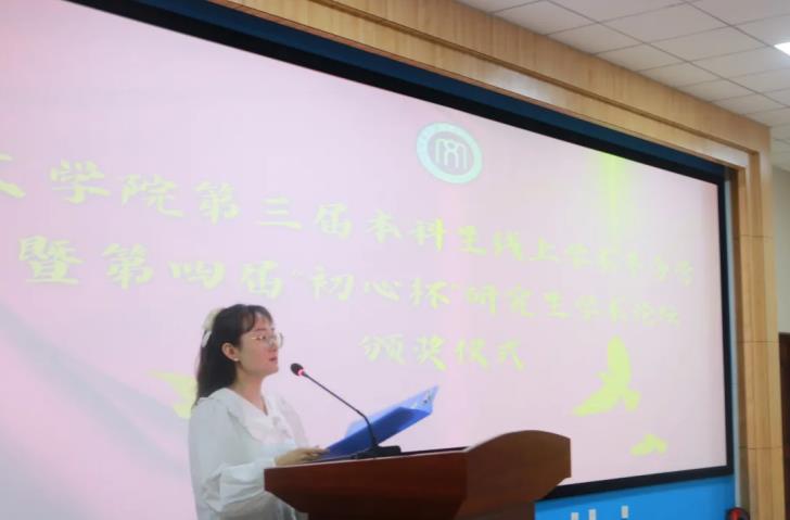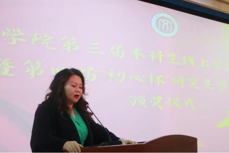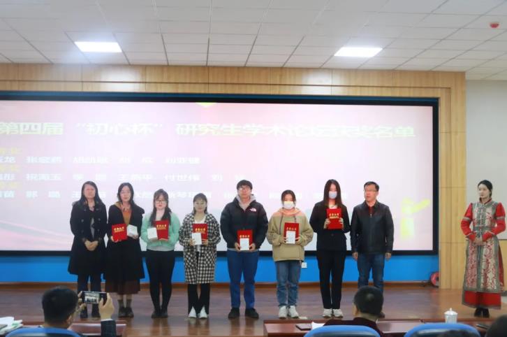 典礼第二项议程,由牛海龙老师宣读第四届“初心杯”研究生学术论坛获奖学生名单。刘玉龙等5名学生获得一等奖,李鑫彤等6名学生获得二等奖,刘苗苗等8名学生获得三等奖。MILE米乐集团教师为获奖学生颁奖后,教师代表孙静老师对本科生和研究生未来的学术研究方向作了进一步的指明,同时也对MILE米乐集团全体学生寄予厚望,期待大家在未来的学术研究上取得新的成绩。研究生代表刘亚健、李鑫彤也和现场的同学们分享了自己的学习经历,并勉励学弟学妹们厚积薄发,充实自己。