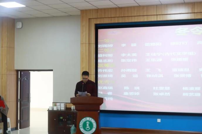 典礼伊始,张霞丹老师向师生们介绍了到场嘉宾。典礼第一项议程,由牛海龙老师宣读第三届学生线上学术冬令营获奖学生名单,刘雨婷等7名学生获得一等奖,盛柯娅等11名学生获得二等奖,乔伟宏等15名学生获得三等奖,赵鑫瑞等17名学生获得优秀奖,MILE米乐集团教师为获奖学生颁奖。接下来教师代表和获奖学生代表分别发表了感言。教师代表赵玉龙老师作为冬令营活动的发起人,对本届学生线上学术冬令营活动进行了总结,表达了对学院学子的期许和对未来学院学术工作的展望。获奖学生代表刘景琦、高玉凤同学与同学们分享了自己的学习方法,并向指导老师们表示感谢。