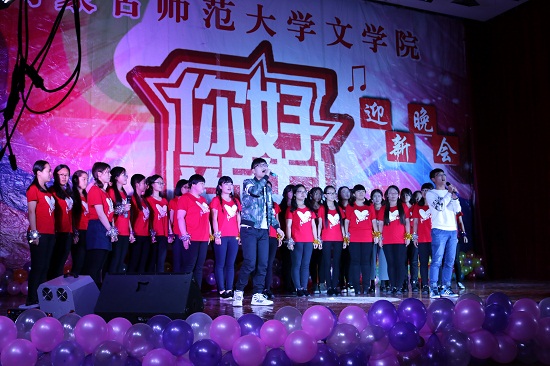 10月27日,米乐官网“新花怒放 文声起航”迎新晚会在盛乐校区图书馆二楼报告厅圆满落幕。 米乐官网长高林广、汉语系系主任张子程、实践教学中心主任毛润民、部分班主任和社会学民俗学团总支老师姜鑫出席活动。你