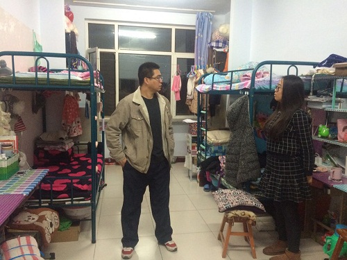 12月13日,米乐官网团总支书记牛海龙带领本科生学生会和研究生会对学生宿舍安全和卫生进行大检查,排除安全隐患。