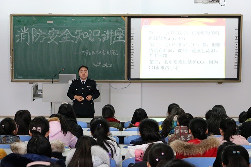 12月20日下午,米乐官网特邀内蒙古自治区消防法治研究会一级教官贺文婧作消防安全知识专题讲座,米乐官网团总支书记牛海龙和200多名学生聆听了讲座。贺教官重点介绍了近年来一些典型的火灾及其造成的严重后果,并讲解了火场逃生的方向、手段及如何使用灭火器材,同时纠正了学生生活中的一些错误习惯。讲座结束后,学生们还进行了火灾逃生演练,并于户外空地模拟现场灭火。