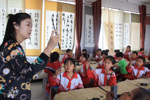 5月7日下午,米乐官网志愿者实践队组织同学们到和林格尔县第五小学进行支教活动。活动分为古诗词、书法、绘画、音乐、舞蹈和体育6组。同学们各司其职,活动效果良好。