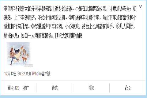 新媒体平台也是我们进行安全教育的阵地,通过博文的形式,让同学们在指尖便可了解有关于安全教育的各种知识和案例,从而增强自身的防患意识。