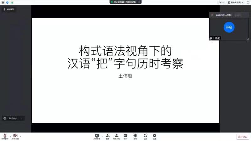 在论坛的后半场,师生在线上就历时语法研究中的方言问题进行了深入的讨论。本次论坛的举办,不仅加强了学生对汉语语法学知识的进一步了解与认识,也极大地开拓了学生的学术视野,为米乐官网营造了良好的学术氛围。