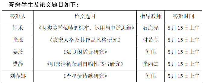 MILE米乐集团2022届古代文学硕士论文答辩会公告