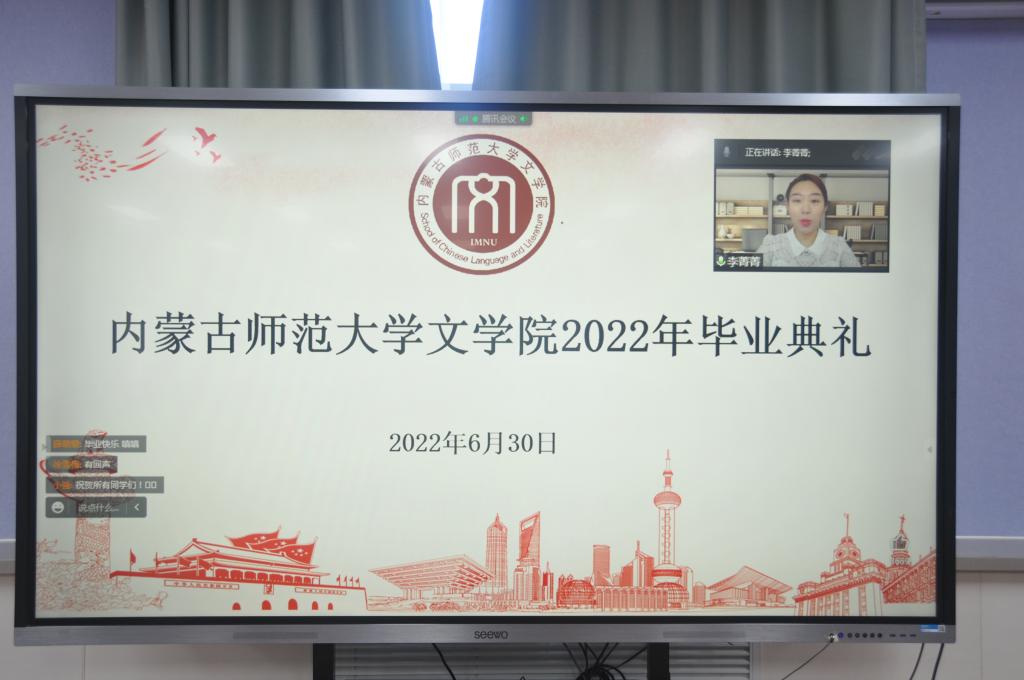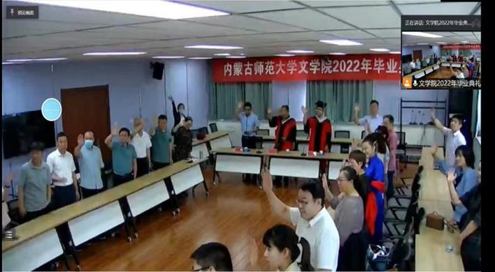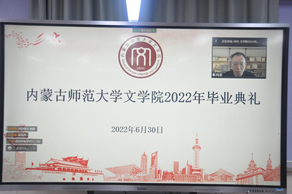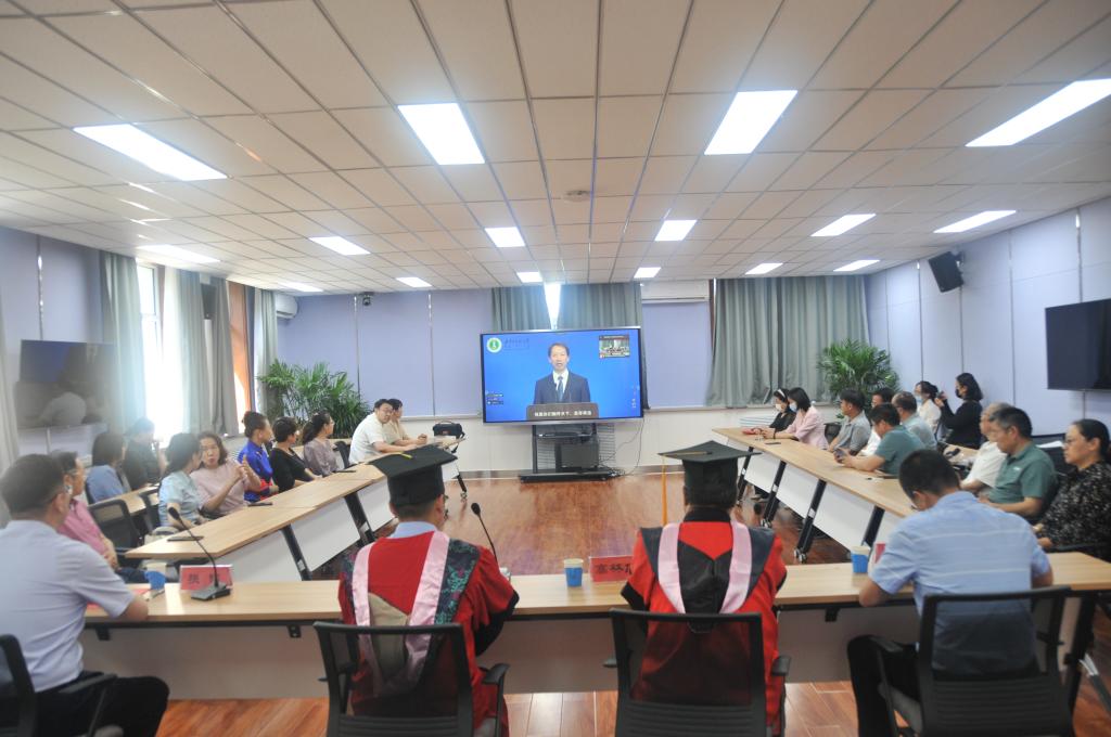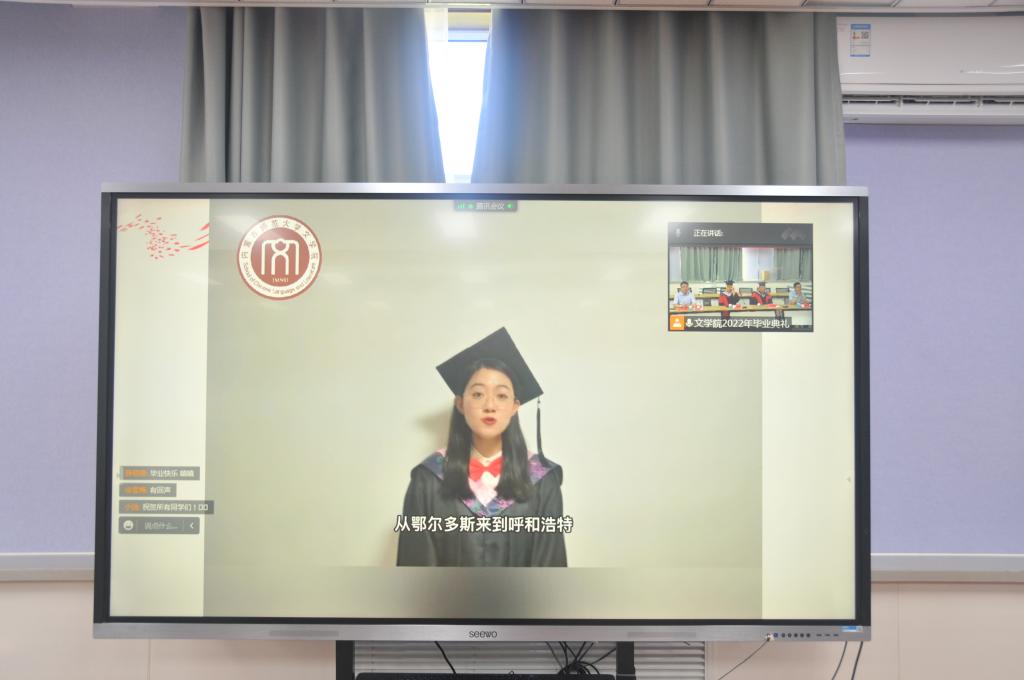 在毕业典礼正式开始之前,工作人员播放毕业生精心制作的校园风景短片,学院领导、教师与2022届全体毕业生共同回忆他们在校园度过的青葱岁月、点点滴滴。