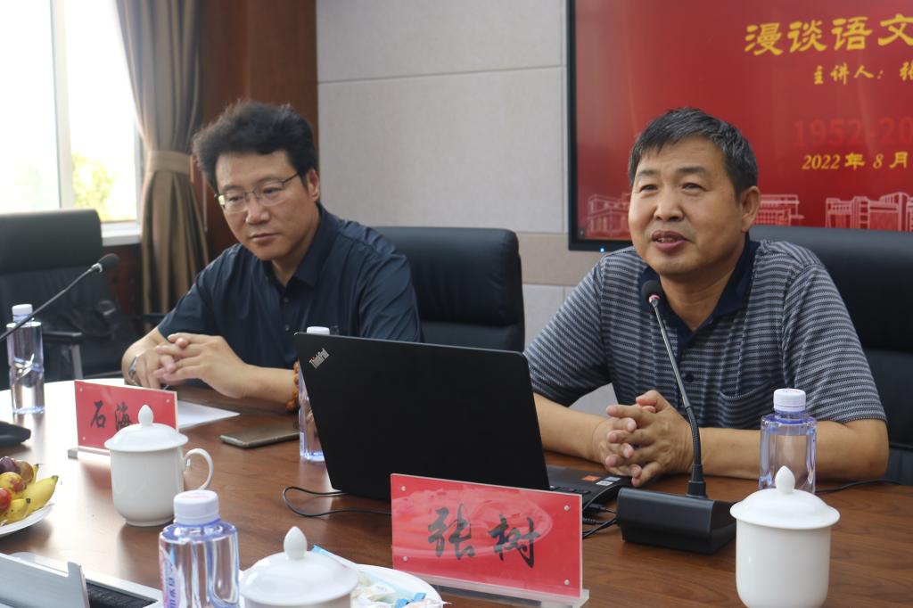 2022年8月7日下午,MILE米乐集团70周年院庆系列活动之一——“学术讲座”在盛乐校区学院楼A区MILE米乐集团会议室举行。MILE米乐集团1990届校友、全国优秀教师、乌海市第一中学校长张树为母校师生作了题为“漫谈语文教育”的学术讲座。讲座由MILE米乐集团副院长石海光主持。