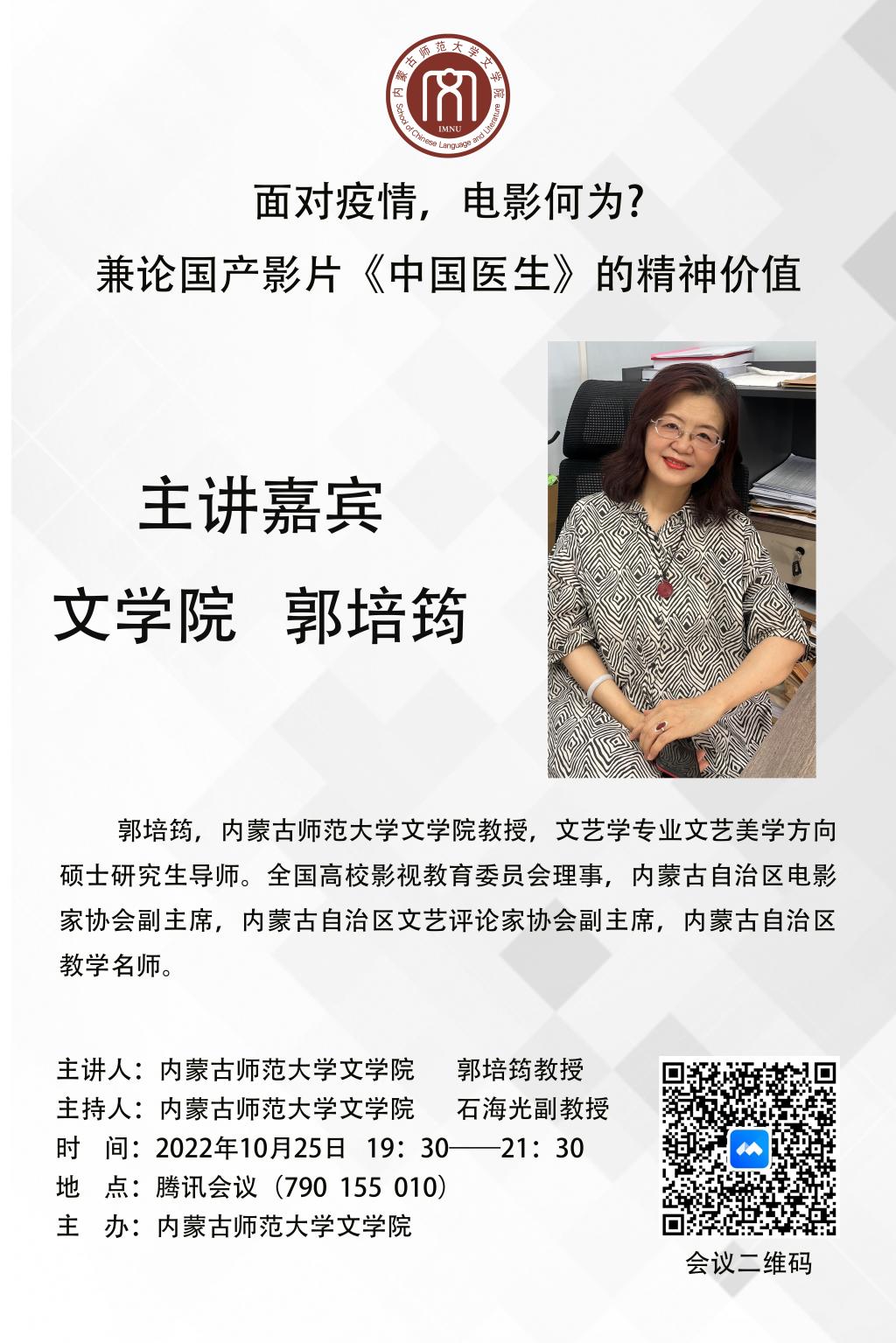 2022年10月25日,MILE米乐集团结合当前抗疫形势,组织了抗疫专题特别教研活动,由郭培筠教授做了题为《面对疫情,电影何为?——兼论国产影片<中国医生>的精神价值》的专场讲座。