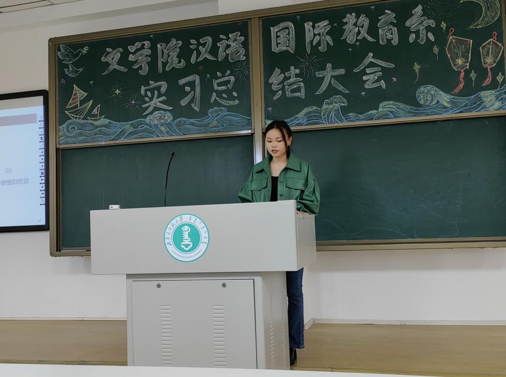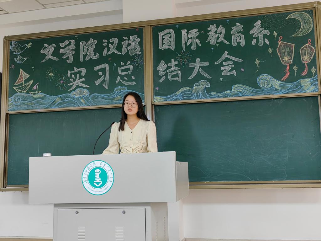 2020级汉语国际教育班的全体同学于2023年3月到7月期间在本校国际交流学院完成了全员、全学期的实习。在实习期间,同学们共分为六组,分别跟随国际交流学院的各位老师深入课堂,展开实习。在此次实习总结大会中,黎和喜、何雨泽、胡良好、张雨霏、萨日娜和李胜南同学作为实习生代表分别分享了他们的实习经历和心得。六位同学从不同的角度为大家展示他们多姿多彩的实习生活。