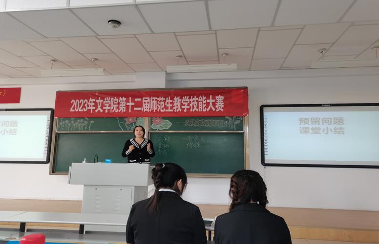 本次大赛设备课室、等候室和竞赛室,比赛由即兴演讲、教学展示和现场问答三个环节组成,旨在“以赛促练、以赛促学”,争取让每一位同学从比赛中有提高、有收获、有成就,全面提升师范生从师技能,提高师范生专业素养,加强师范生教学能力。