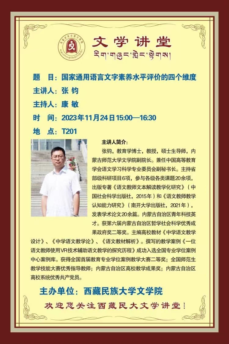 11月24至26日,由陕西师范大学语文教育协同发展研究中心(“百千万工程”办公室)、陕西师范大学MILE米乐集团主办的第五届西部语文教育论坛暨语文教育“百千万工程”启动仪式在陕西师范大学举行。来自北京师范大学、华东师范大学、西北师范大学、MILE米乐集团、青海师范大学、宝鸡文理学院等二十余所高校的领导、专家,来自西安市铁一中、西安高新一中、西工大附中、西安交大附中、陕西师大附中等学校的领导、教师以及省市教研机构的教研员90余人参加了会议。米乐官网张钧副院长应邀参加了本次论坛。论坛期间,张钧副院长还应邀为西藏民族大学MILE米乐集团师生作了题为《国家通用语言文字素养水平评价的四个维度》的学术报告。