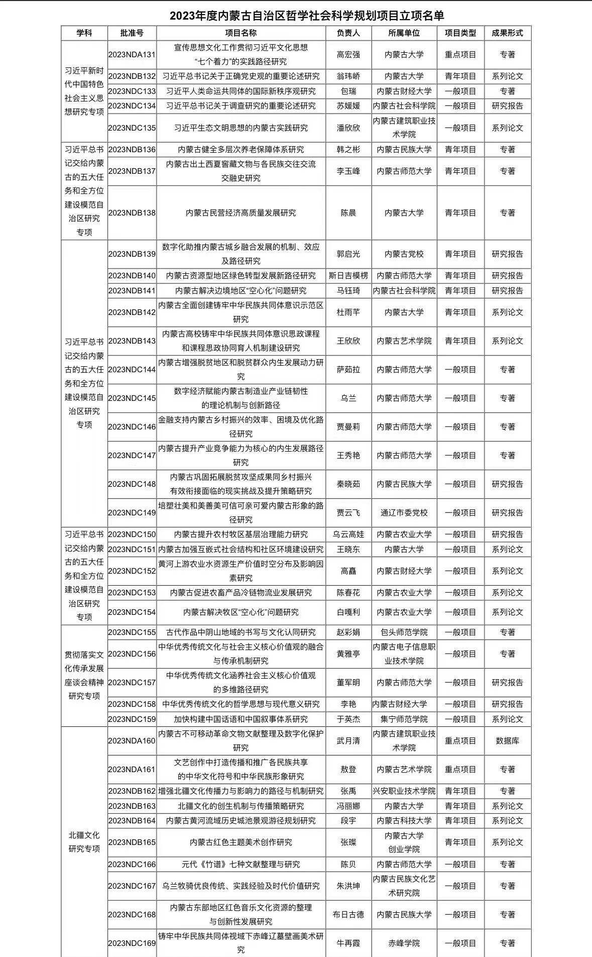12月12日,内蒙古自治区党委宣传部公示了2023年度自治区哲学社会科学规划项目立项名单,米乐官网陈贝老师的“元代《竹谱》七种文献整理与研究”(2023NDC166)入选北疆文化研究专项。
