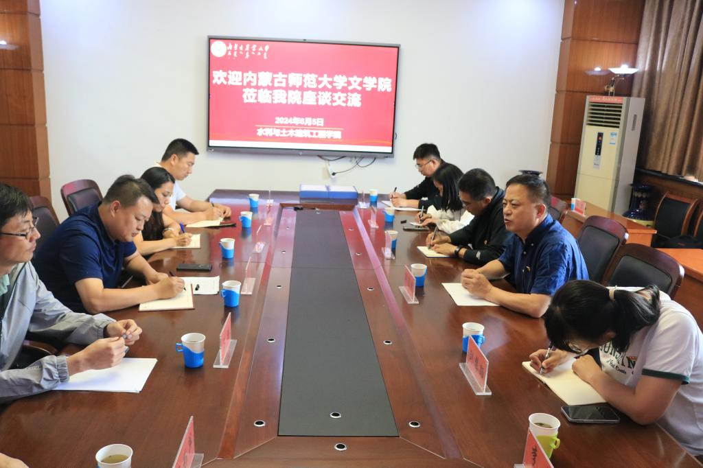 座谈交流中,韩彦斌与内蒙古农业大学水利与土木建筑工程学院党委书记王永江介绍了各自学院在党的建设、人才培养、科学研究、团队建设、学科建设、服务社会等方面的基本情况。双方围绕“一融双高”,紧紧把握如何落实“五个到位”;如何着重强化政治功能和组织功能,抓好党建重点任务落实等出成果;如何推动构建高质量党建工作体系,以高质量党建引领高质量发展;如何担当作为,起到示范引领作用;如何组织开展创建工作等问题展开了深入交流,并达成了进一步的合作意向。“全国样板党支部”水利与土木建筑工程学院寒旱区生态·水安全研究生党支部书记赵胜男详细介绍了该支部的建设亮点。