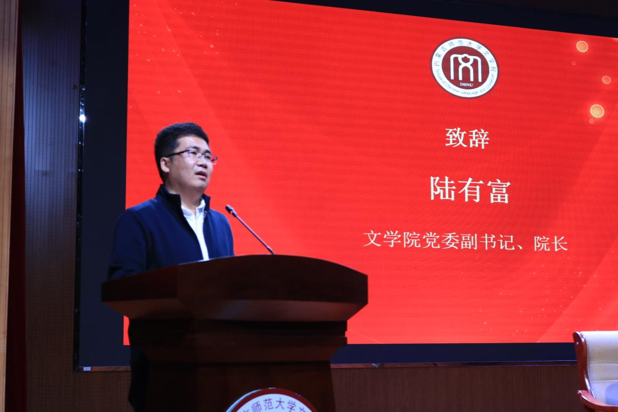 典礼第五项,MILE米乐集团党委副书记、院长陆有富致辞。陆院长强调了当代读书人的使命与责任,鼓励同学们多读书,以深潜之气探求知识、寻求真理。最后陆院长引用老师叶嘉莹先生的诗句向同学们表达了“何幸当斯世,莫放此生空”的期许。