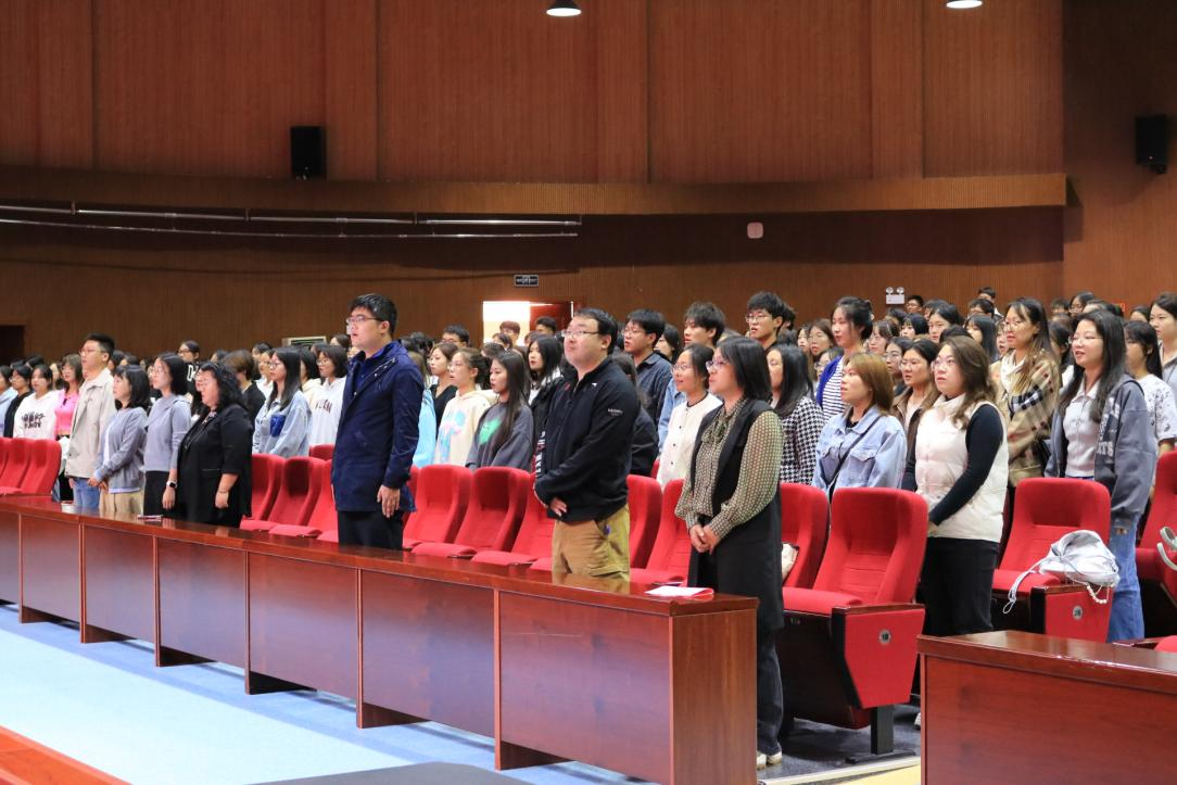 典礼第四项,任晓彤教授作为教师代表发言。任晓彤教授以浅显易懂且风趣的语言向新生分享了她的学习经历及对汉语言文学专业的见解,为2024级新生打开了通往文学世界的大门,在同学们的心中播下了一粒奋进的种子。