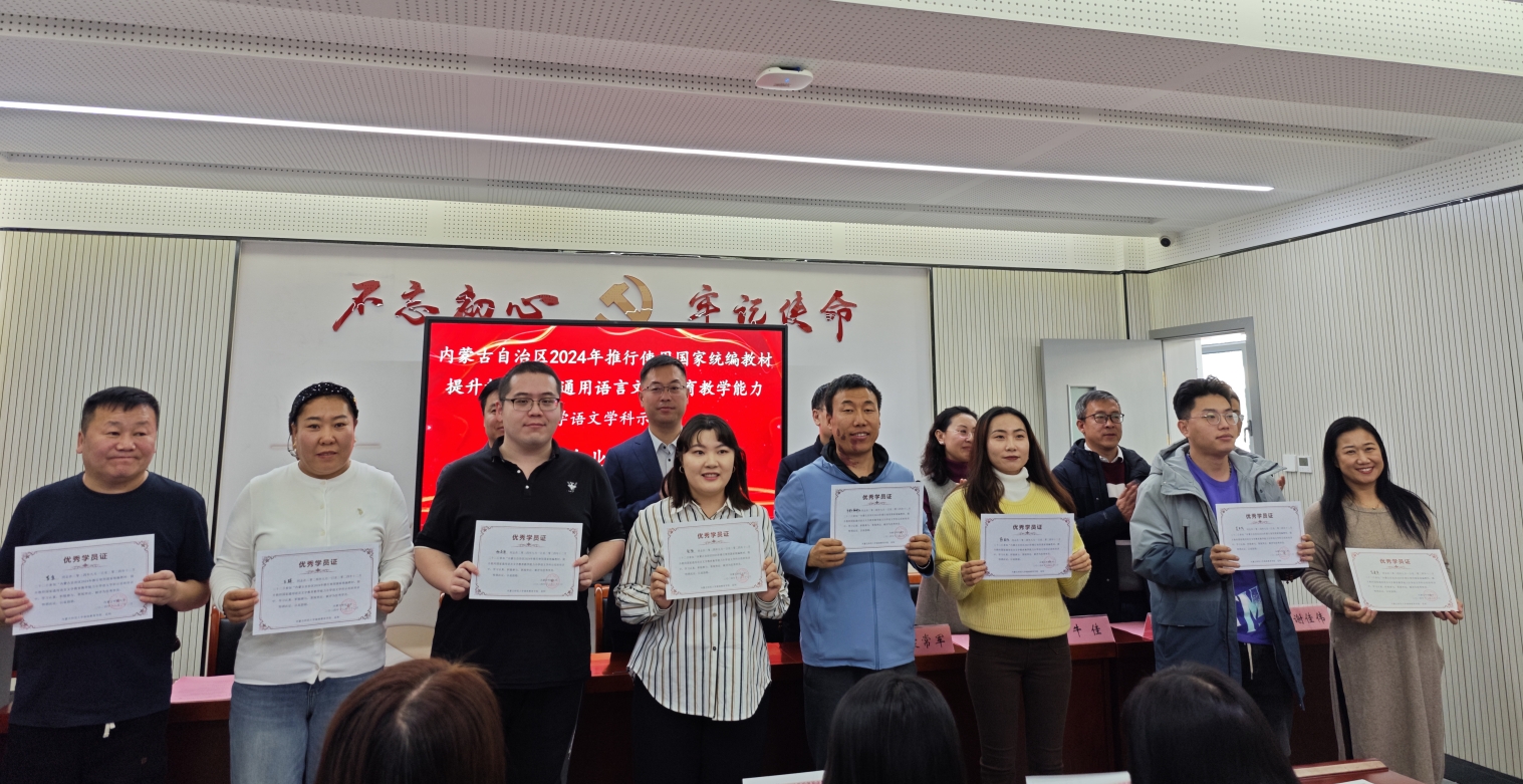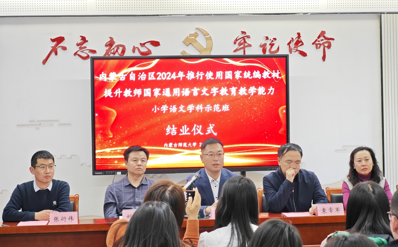 2024年12月20日,米乐官网和继续教育学院共同承担的内蒙古自治区2024年推行使用国家统编教材提升教师国家通用语言文字教育教学能力小学语文学科示范班培训工作圆满完成,参训的48位学员全部顺利结业,当日举办了隆重的示范班结业仪式。米乐官网副院长张钧、汉语言文学系主任李瑞春、青年教师谢佳伟出席示范班结业仪式。