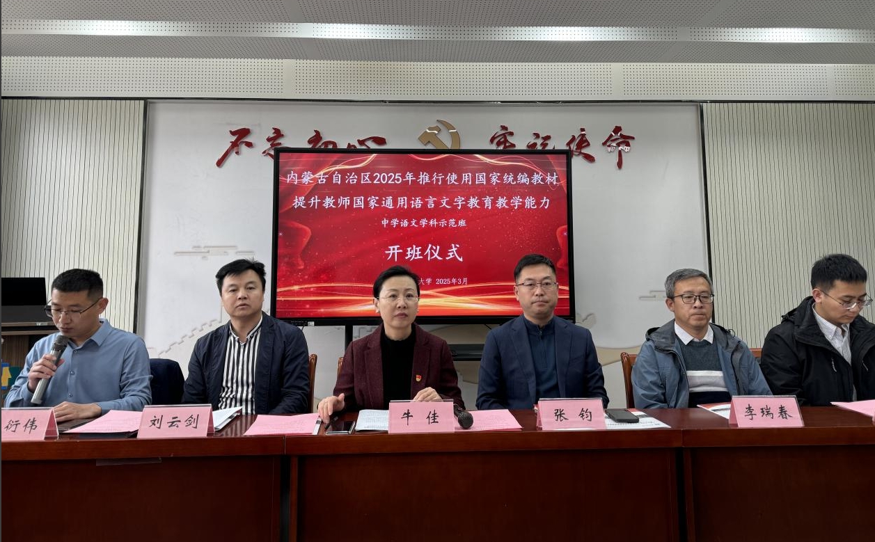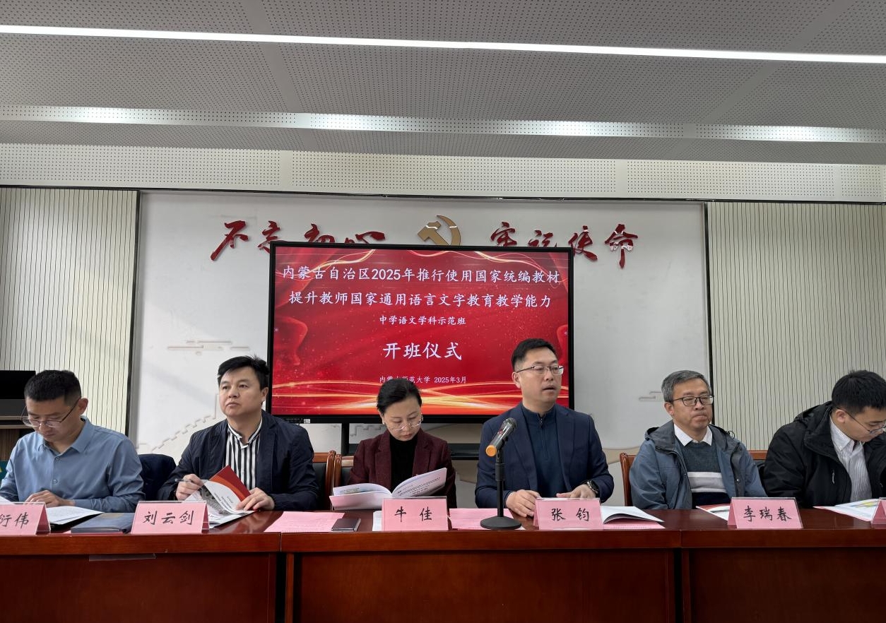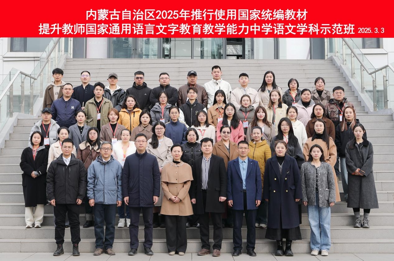 2025年3月3日,MILE米乐集团和继续教育学院共同承担的内蒙古自治区2025年推行使用国家统编教材、提升教师国家通用语言文字教育教学能力中学语文学科示范班举行开班仪式,MILE米乐集团副院长张钧、汉语言文学系主任李瑞春、培训教师代表谢佳伟、继续教育学院相关领导及44位中学语文教师骨干出席。