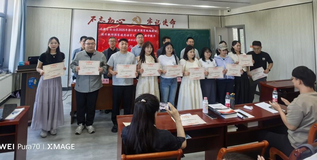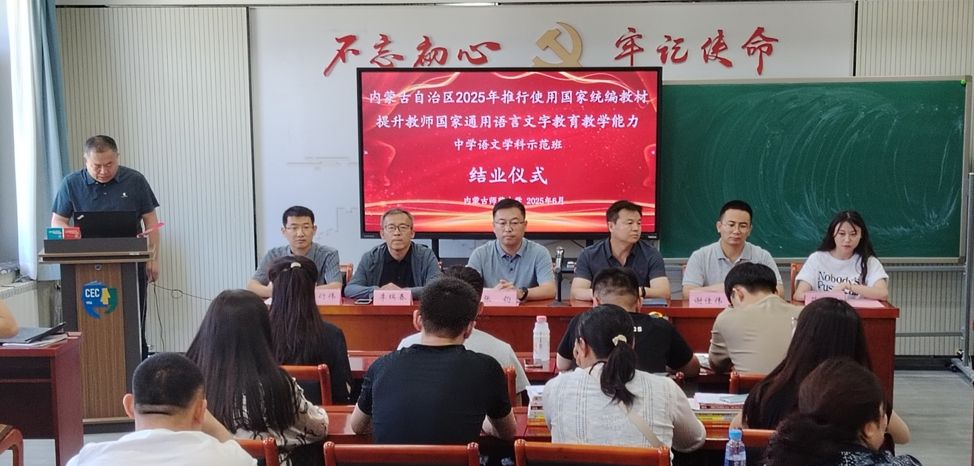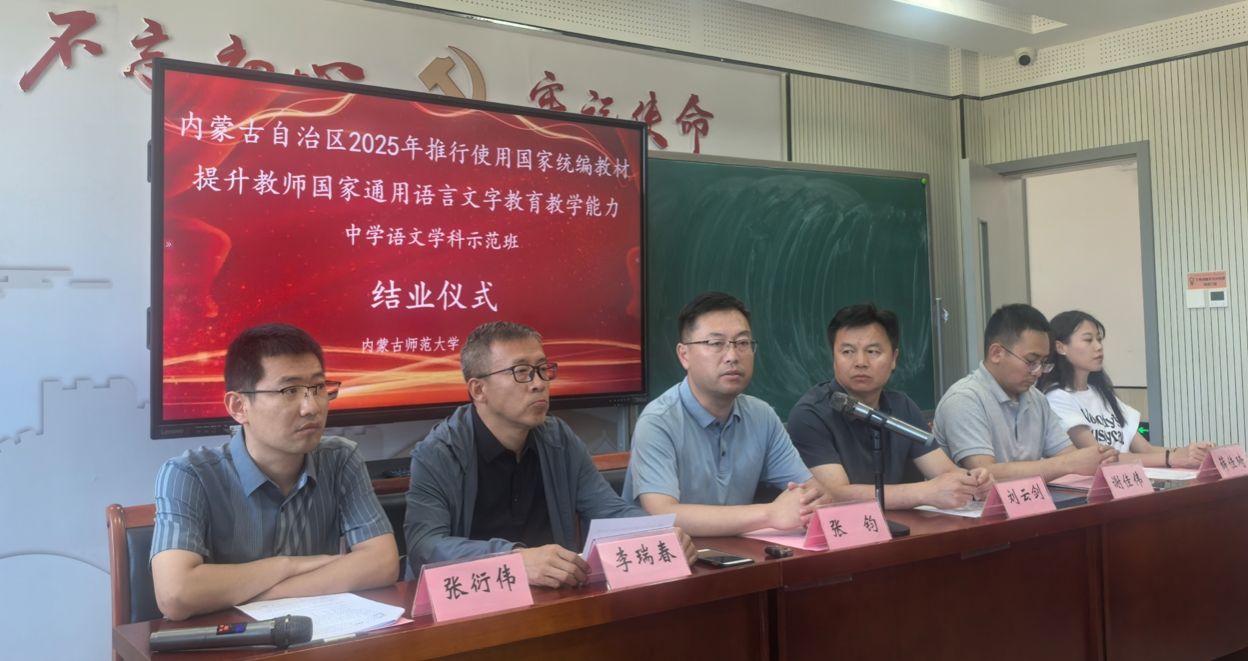 2025年6月20日,米乐官网与继续教育学院、国家语言文字推广基地(MILE米乐集团)共同承担的内蒙古自治区2025年推行使用国家统编教材提升教师国家通用语言文字教育教学能力中学语文学科示范班培训工作圆满完成,参训的43位学员全部顺利结业,当日举办了隆重的示范班结业仪式。米乐官网副院长张钧、汉语言文学系主任李瑞春、青年教师谢佳伟博士出席示范班结业仪式。