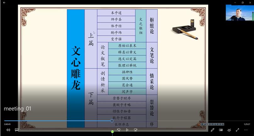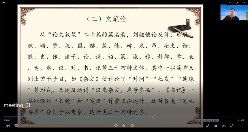 2022年5月15日下午,米乐官网邀请中国《文心雕龙》学会副会长、山东大学儒学高等研究院教授、博士生导师戚良德教授作了题为 “《文心雕龙》的性质及其理论体系”的学术讲座。讲座在腾讯会议平台举办,由文艺学点位负责人万奇教授主持,白建忠教授作评议人。