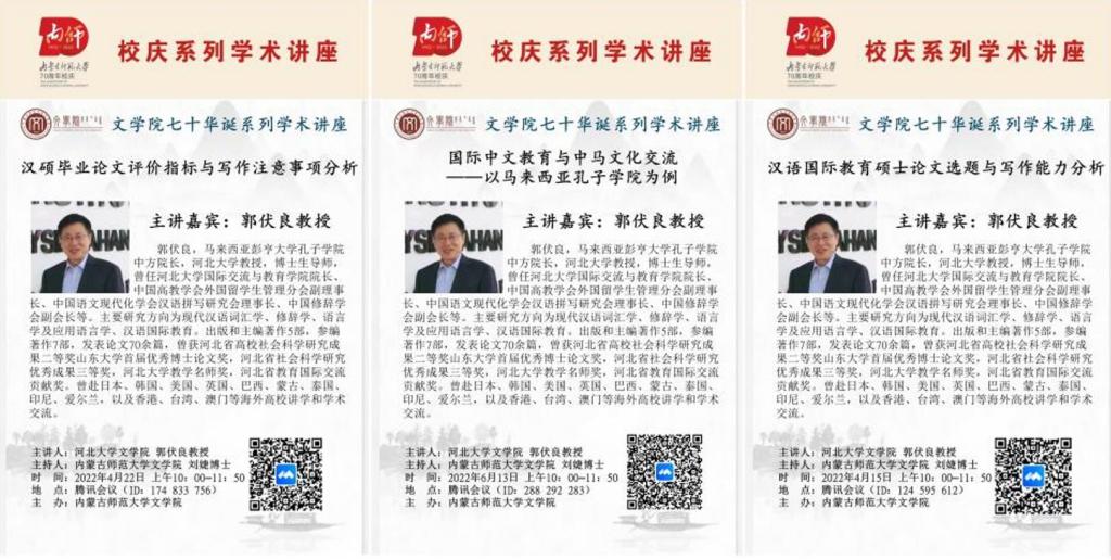 2022年4月15日至6月13日,马来西亚彭亨大学孔子学院中方院长、河北大学教授、博士生导师郭伏良教授应邀为米乐官网师生作了关于汉语国际教育专业硕士研究生学位论文选题与写作的线上系列讲座。讲座共分为三次,分别于4月15日、4月22日、6月13日上午在腾讯会议平台举办。