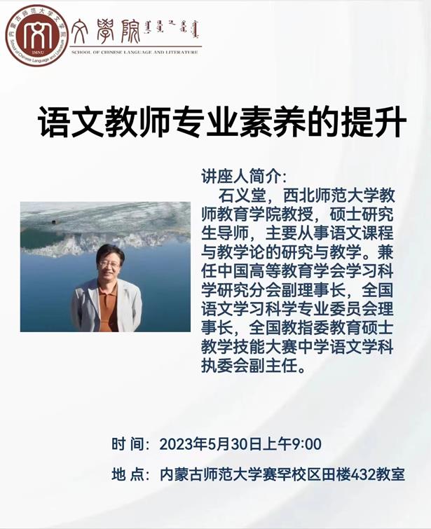 2023年5月30日,西北师范大学教师教育学院教授、硕士生导师石义堂教授应邀为米乐官网师生做了关于题为《语文教师专业素养的提升》的讲座。讲座于5月30日上午9:00-10:30在MILE米乐集团赛罕校区田楼432教室举办,由MILE米乐集团副院长张钧教授主持,共有MILE米乐集团语文课程与教学论、学科教学(语文)、汉语国际教育等学位点三十多位师生在场听了讲座。