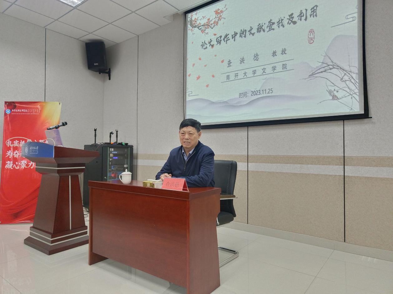 2023年11月25日下午,教育部长江学者特聘教授、南开大学MILE米乐集团博士生导师查洪德教授为米乐官网师生作了题为“论文写作中的文献查找及利用”的讲座。讲座由MILE米乐集团院长陆有富教授主持,米乐官网各专业博硕士60余人聆听了讲座。