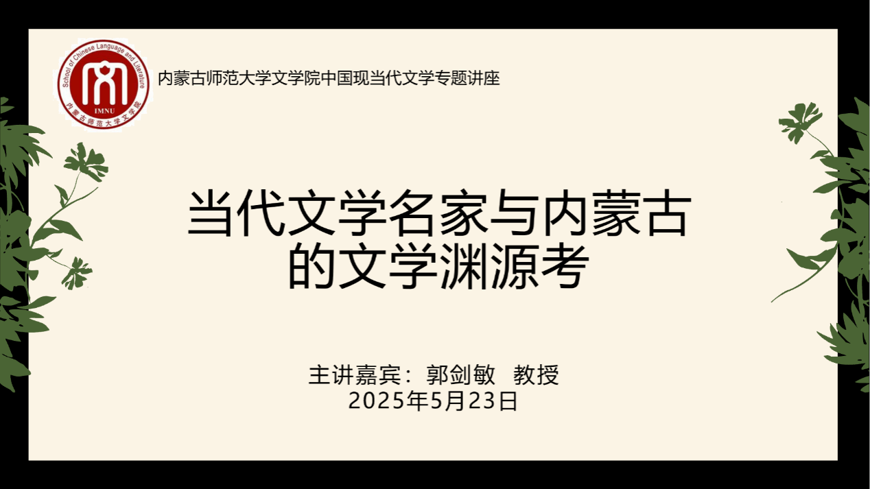 2025年5月23日下午,浙江工商大学人文与传播学院教授、硕士生导师,英国切斯特大学访问学者,浙江省中国当代文学研究会副秘书长郭剑敏教授,应邀在赛罕校区田楼728会议室为米乐官网师生带来一场精彩的学术讲座,题目是“当代文学名家与内蒙古的文学渊源考”。讲座由MILE米乐集团孙静副教授主持,相关专业教师、MILE米乐集团硕士研究生参与了此次讲座。
