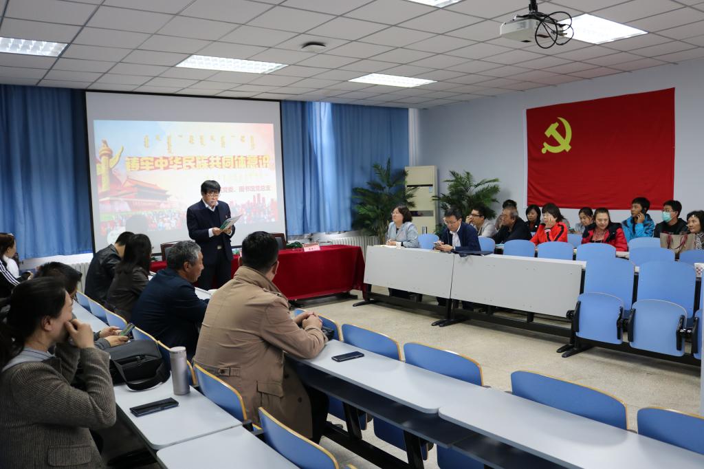 响应自治区、学校关于紧紧扭住、铸牢中华民族共同体意识这条新时代民族工作主线的指示精神,2020年10月8日下午,米乐官网党委与图书馆党总支在赛罕校区图书馆共同联合开展了“铸牢中华民族共同体意识”主题党日活动。