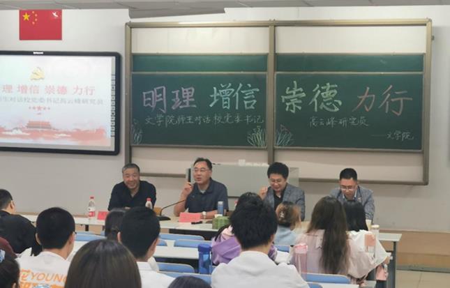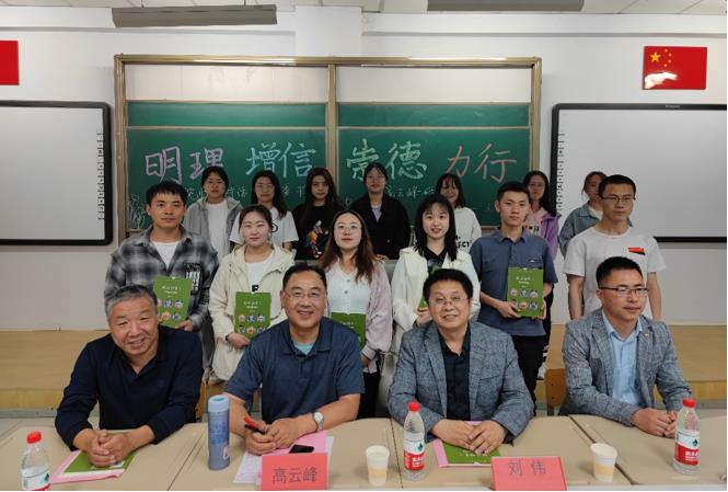 5月28日晚,MILE米乐集团在行知楼118教室举办了“人文之夜”第十七次读书报告会,读书会的主题是:“明理、增信、崇德、力行——对话校党委副书记高云峰研究员”。本次读书会邀请到了学校党委副书记高云峰研究员,MILE米乐集团党委书记高林广教授、教工一支部书记刘伟博士,以及MILE米乐集团研究生、本科生共200余人参加了本次活动,赵玉龙博士主持了会议。