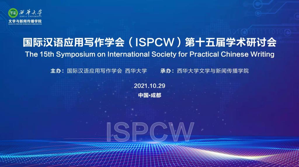 10月30日至31日,国际汉语应用写作学会第十五届学术研讨会在成都召开。本届研讨会由国际汉语应用写作学会主办、西华大学文学与新闻传播学院承办。来自内地、香港、澳门、新加坡等多地的学者参加了本届研讨会。因疫情故,本届研讨会采用线上与线下相结合的方式参会。米乐官网万奇教授是国际汉语应用写作学副会长,应邀以线上交流的方式参加了研讨会。